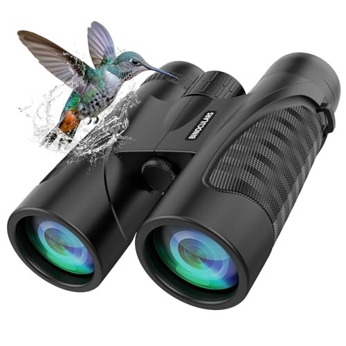 These binoculars feature a powerful 12×42 magnification system that delivers crisp, vibrant images, making them perfect for spotting wildlife or enjoying scenic views. The combination of a large eyepiece and wide field of view ensures users can comfortably observe their surroundings with minimal eye strain and better situational awareness. Additionally, the binoculars’ waterproof design protects against rain and splashes, allowing for use in a variety of outdoor environments without worry.