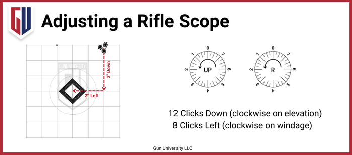 - Adjust elevation turret to raise or lower point of impact.